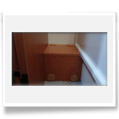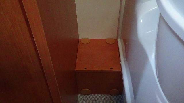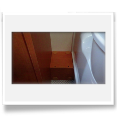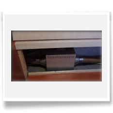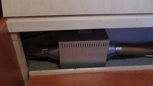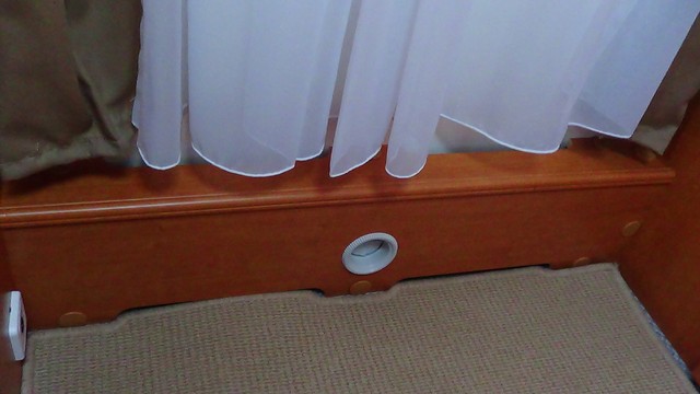 For at få ekstra varme til badeværelset har vi monteret en Heat 1500 i rundsidde gruppen helt op mod køleskabet, og monteret termostaten på badeværelset. Der ud over er der monteret en konvektorslange rundt oppe ved ryglænet i rundsidde gruppen.