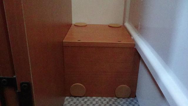 For at undgå frost ved toilet beholderen er der ført en varme slange ind til beholderen, så må vi se om vi kan undgå at vandtilførslen fryser.
